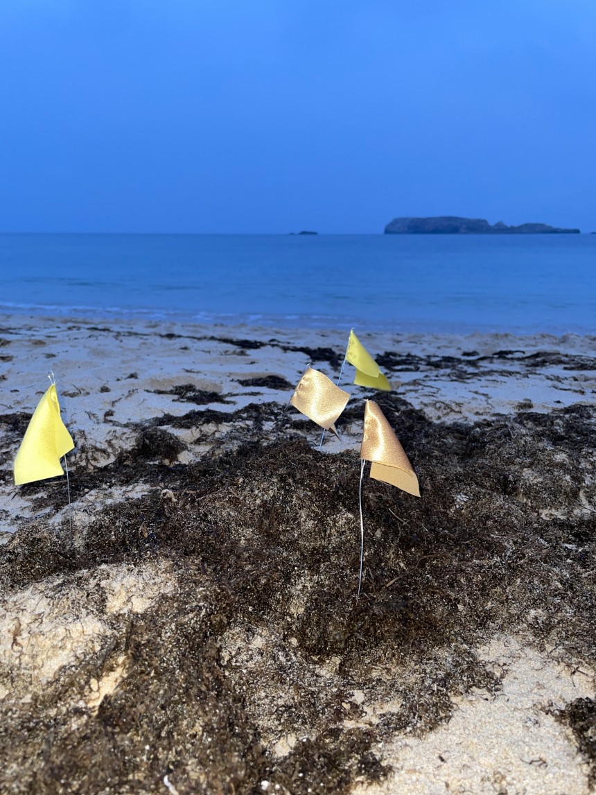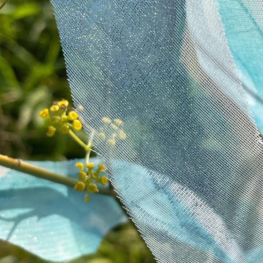 Aquatic and aniseed aroma notes from in situ plants and sea, shimmer and watercolor on silk fabric