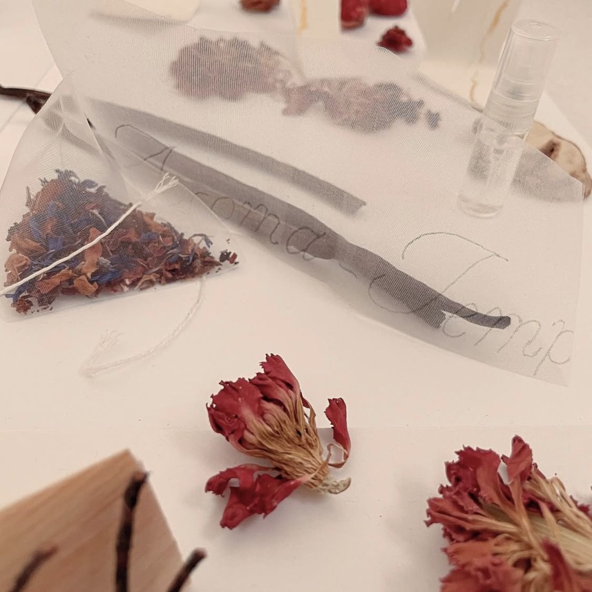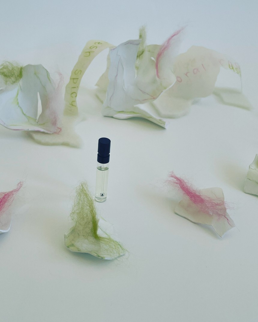 2024, Clay, plastic and pure silk fabric, glass and perfume, 5ml